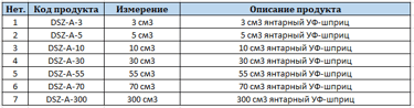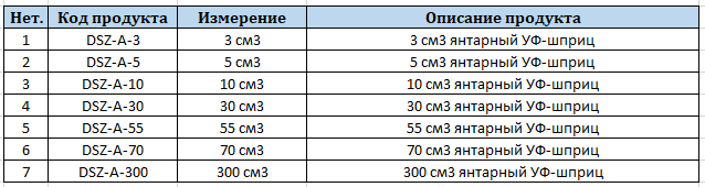 Типы шприцев и цилиндров Amber UV