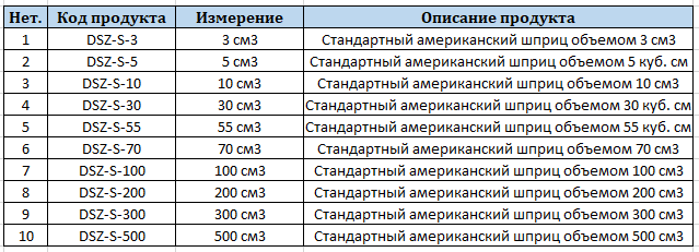Стандартные типы шприцев и цилиндров